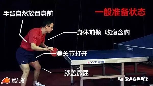 反手位,右脚较左脚略微往后少许,身体略微向右转面对球台。