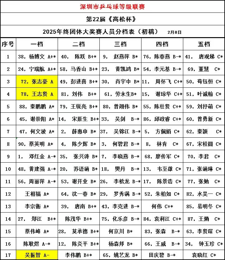 深圳市乒乓球等级联赛