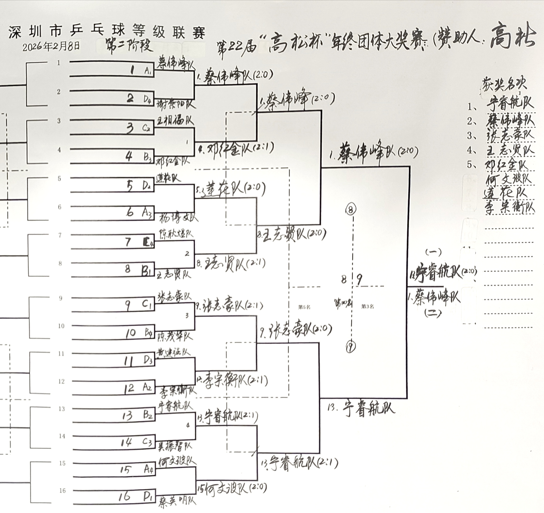 深圳市乒乓球等级联赛 第22届《高松杯》年终团体大奖总决赛 战况