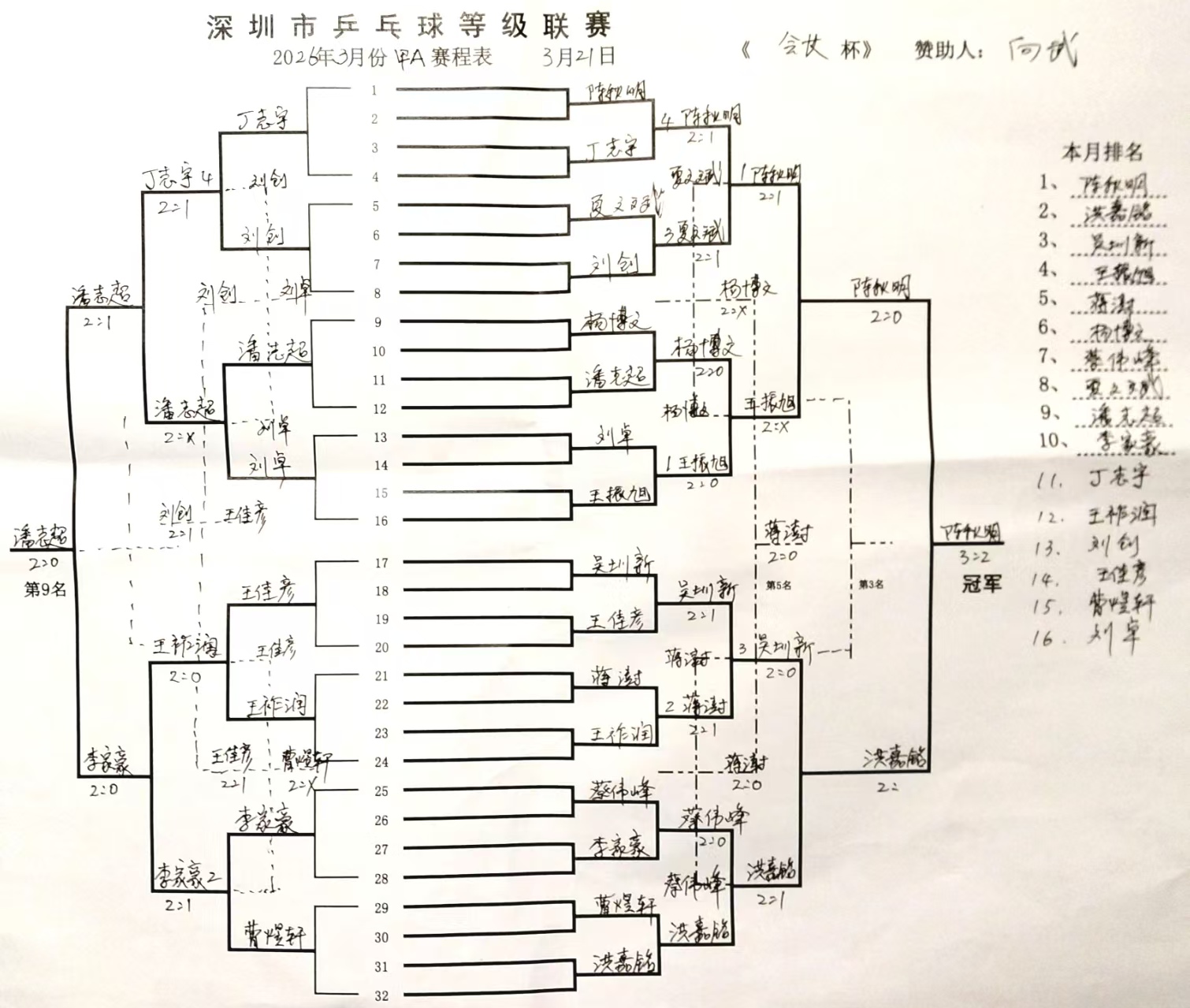 2026年3月份第28届《会长杯》成绩排名 赞助人:向武