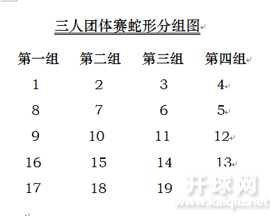 蛇形分组图,每组5支队伍单循环。