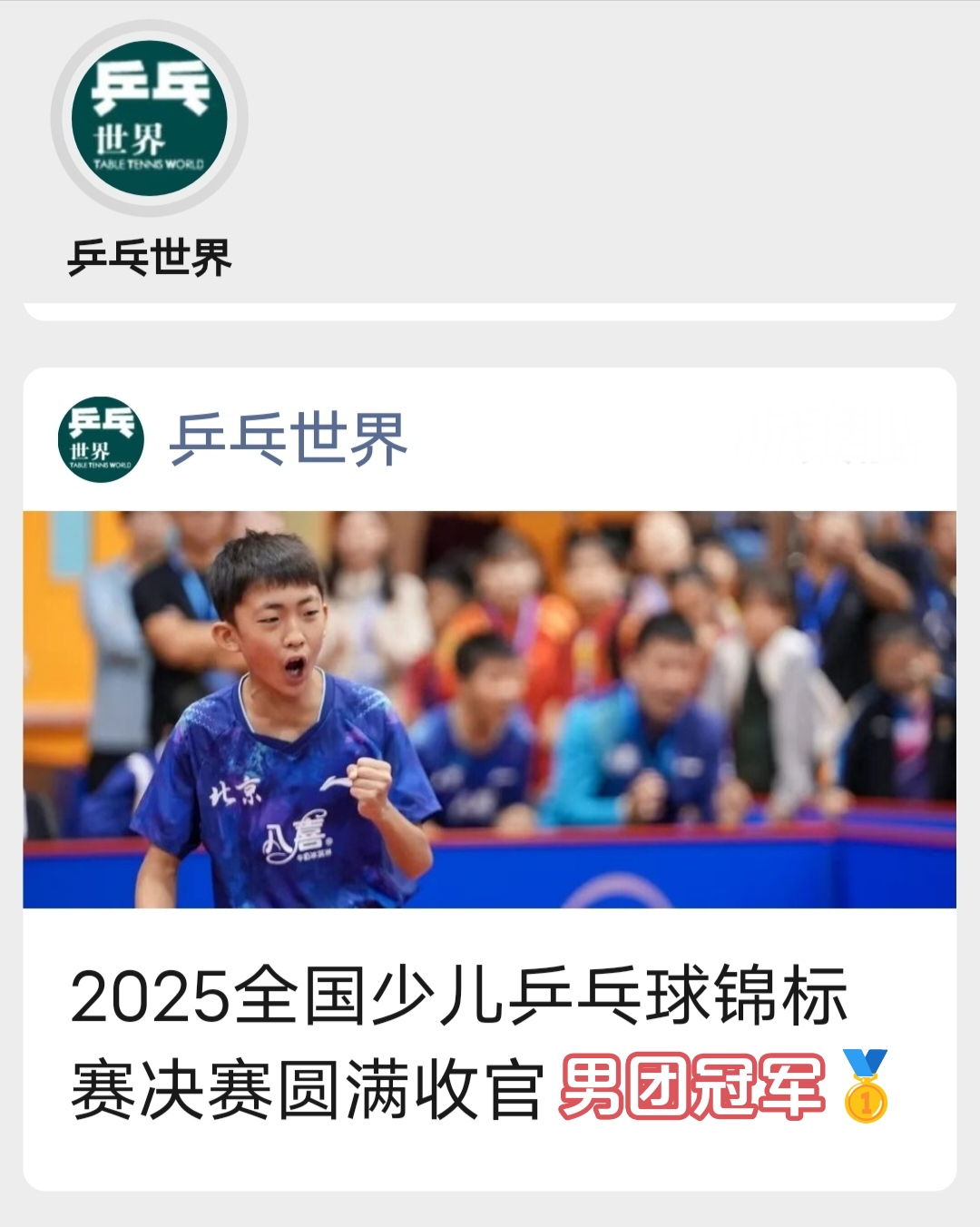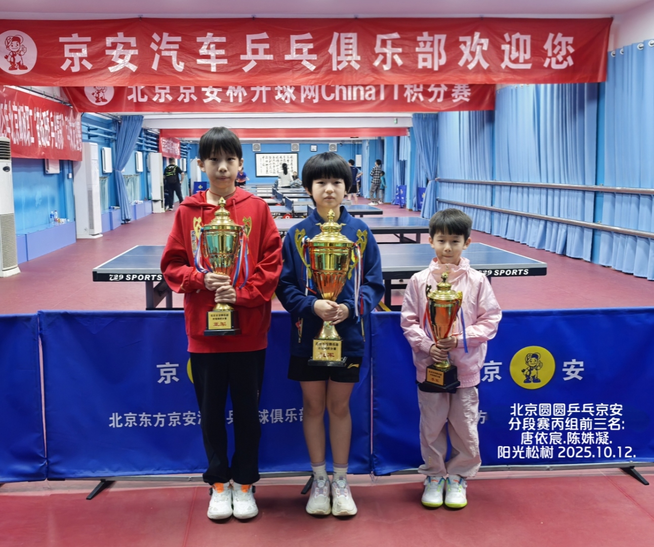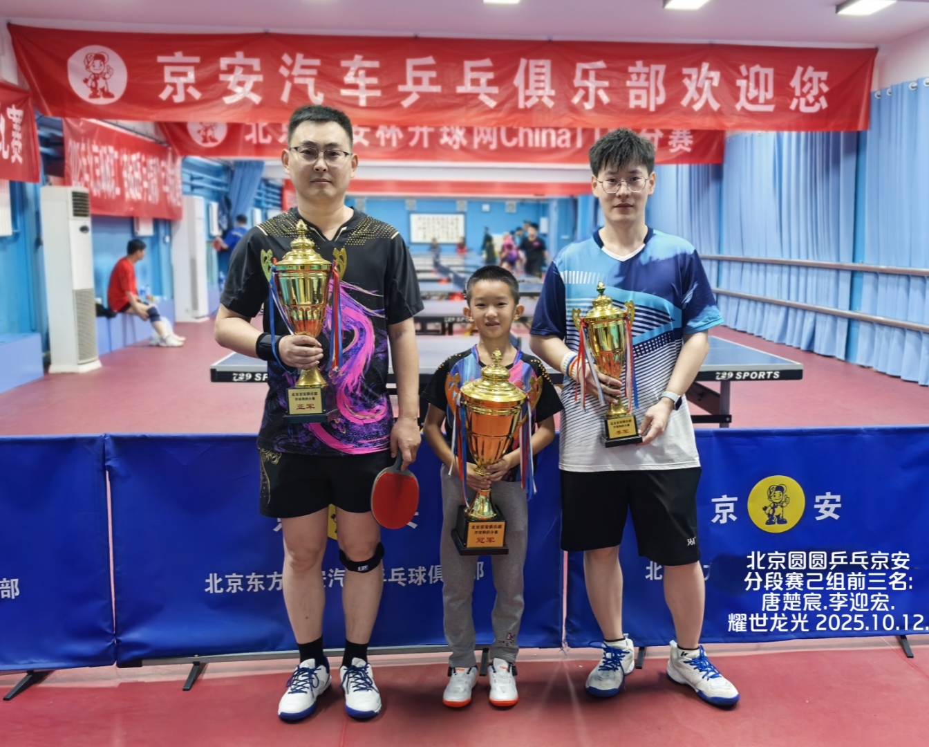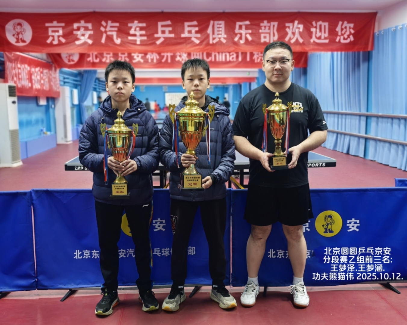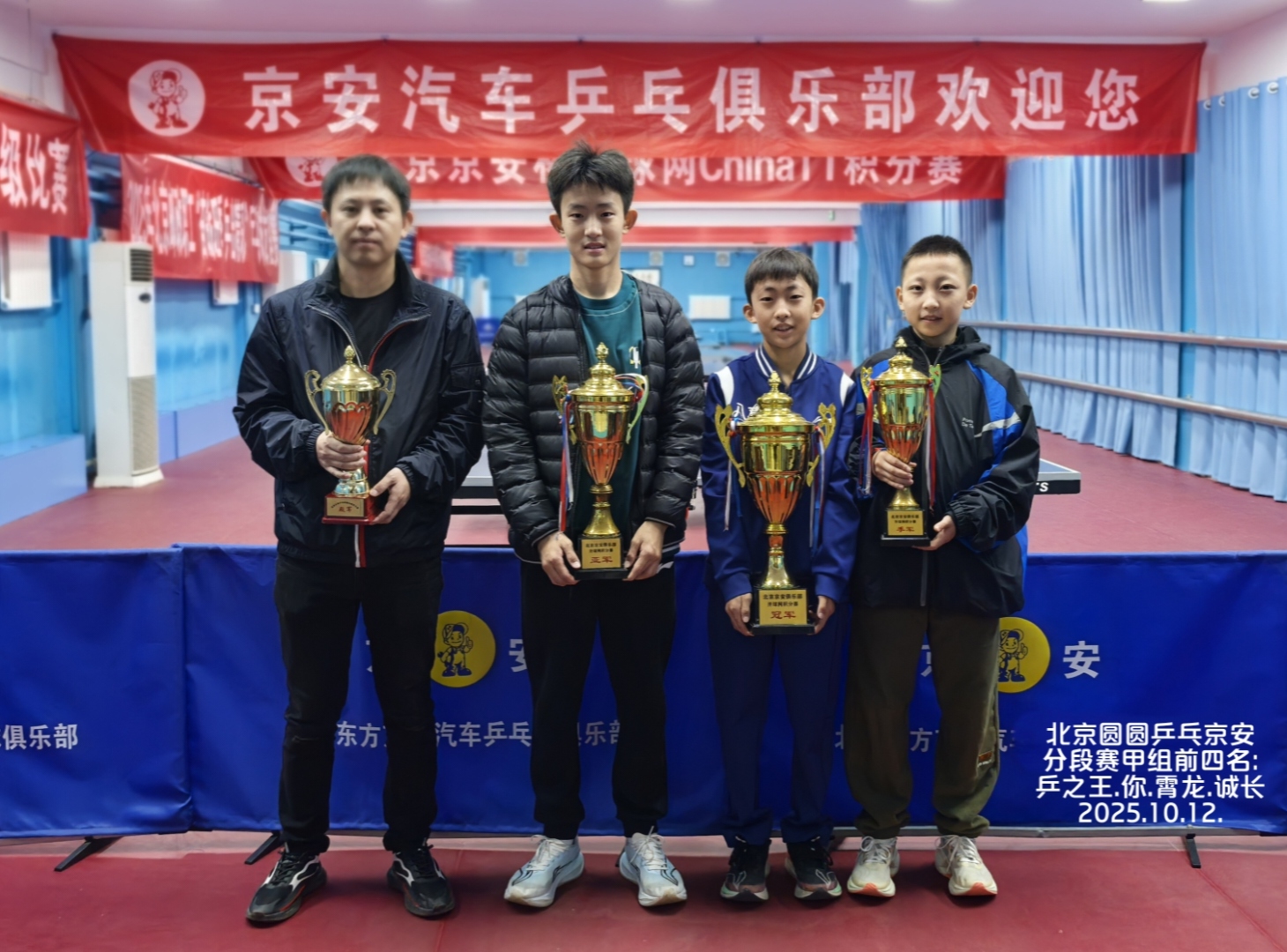 再次感谢北京队多位小将光临京安捧场,提升了本赛事整体水平,使得各组冠军得之不易——含金量极高!尤其甲组冠军@乒之王张兆格,刚与@小锤子姜轩宇并肩作战斩获全国(顶级赛事)少儿乒乓球锦标赛决赛甲组男团冠军!