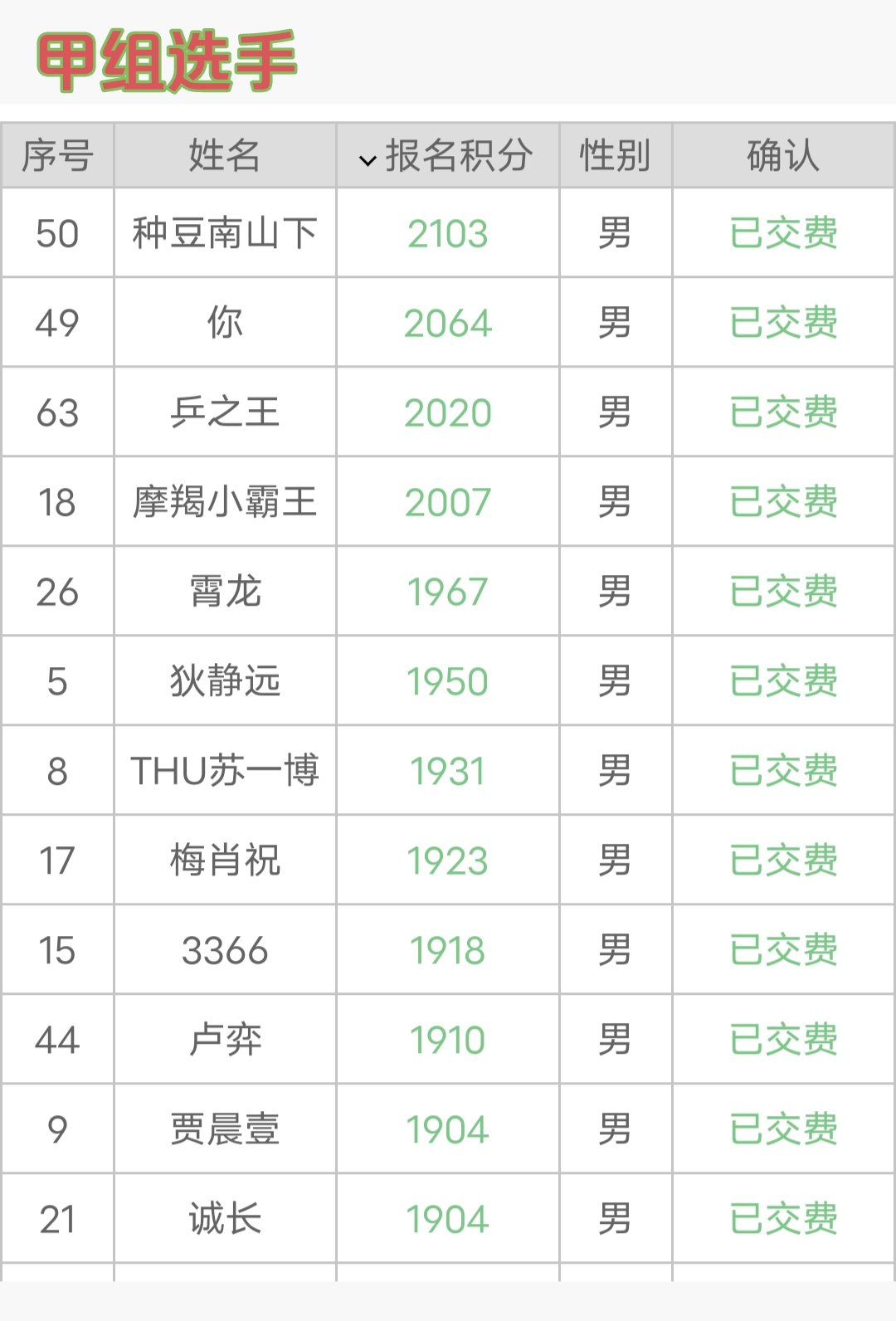今日京安分段积分赛,在各位选手共同协作、大力配合下,顺利结束,圆满举办成功。