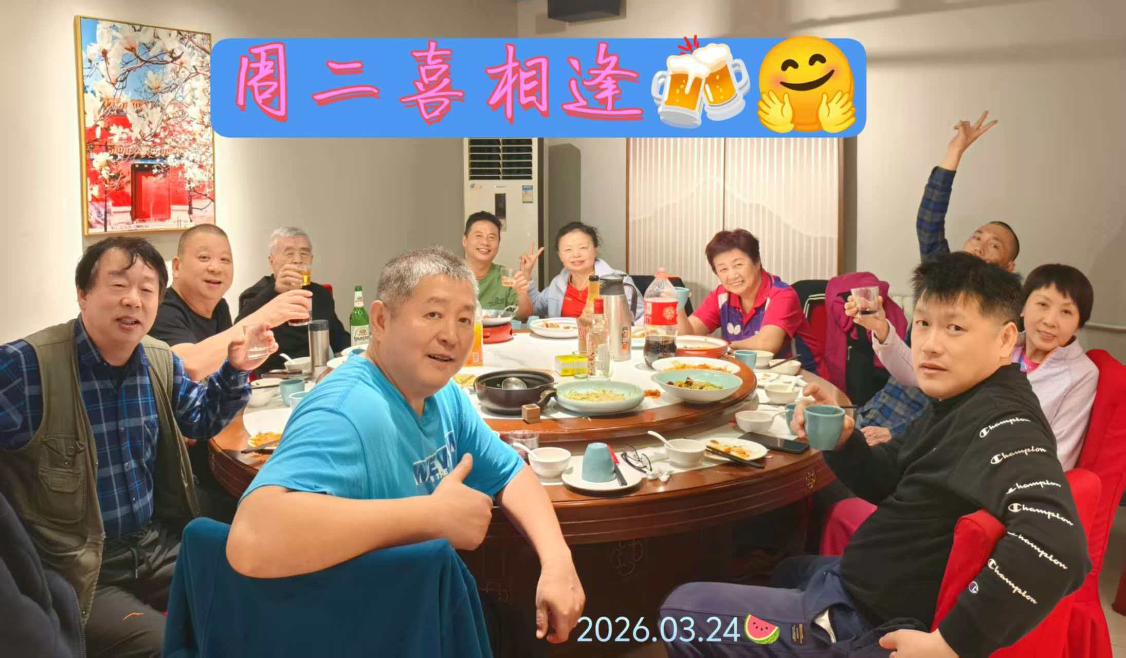 大家有没有发现,热爱运动的人都爱小酌一杯,乒乓球是挥拍时的酣畅淋漓,是每一次扣杀时的专注与释放,多巴胺拉满,越打越上瘾,而一杯美酒,则是忙碌后的放松,是朋友之间相聚的热闹,微醺之间,烦恼全消,幸福感满满。与之每周二的吉祥酒局,雷打不动,则在球友间架起了相互贴近的桥梁,总舵主大考拉25年总结,酒局共计举办了51次,参与者在600人次以上。(在球桌前挥汗的姚局有人可能没有见到,在受伤期间拖着疲惫的身躯往返协调,沟通的姚局则无处不在。为了保证酒局的延续性,亲力亲为,可亲可敬。应该为姚局点赞。)当乒乓球遇上微醺,不是冲动,是恰到好处的快乐叠加,在球场上比拼的是技术,在球场下我们端酒杯聊人生,乒乓解压,一动一静,美酒暖心。这才是成年人热爱美好生活的快乐方式。(纯属个人言论,一笑而过)如果您对此处借用的这段话有所触动,请加入“吉祥赛场”这个大家庭,让我们一起来感受吉祥赛场的和谐而又火热的赛场氛围。
