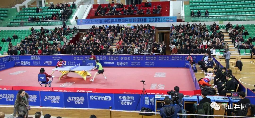 新年伊始。2017-2018乒超联赛的热点场次----霸州海润对阵八一大商,于一月二日在霸州海润俱乐部主场迁安市进行,唐山乒协认为这是进一步推动全市乒乓球运动普及和发展,开阔眼界学习先进技术提高竞技水平,广泛开展全民健身运动的好机会,广大球友非常渴望近距离观摩世界级选手的比赛,,特别是置身现场为河北的俱乐部、为唐山的子弟兵呐喊助威表现了极大地热忱和兴奋。为此,乒协选派34人的观摩助威团,昨晚在迁安九江体育馆观看了比赛。