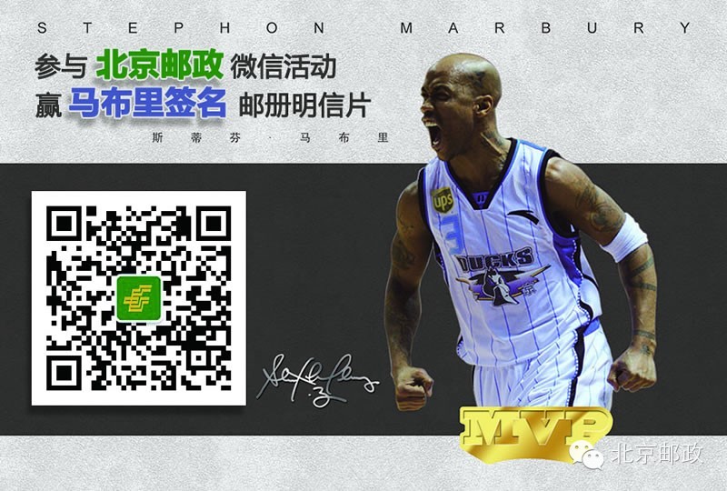 近期北京邮政微信公众号将举办“我喜欢的马布里明信片抽奖活动”,奖品为马布里亲笔签名的《王者之路》纪念邮册、明信片。敬请期待!长按图片可识别二维码