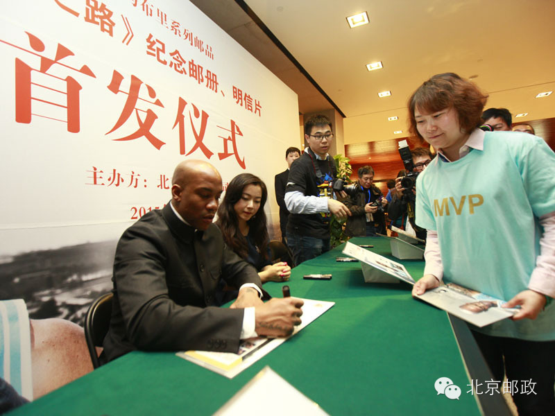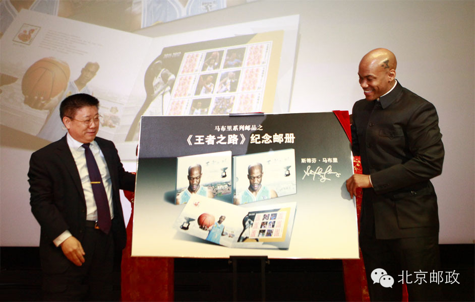 4月18日,北京市邮政公司在国家博物馆举办《王者之路》邮品首发式,马布里现场为《王者之路》纪念邮册和明信片揭幕,并为现场球迷签名留念。